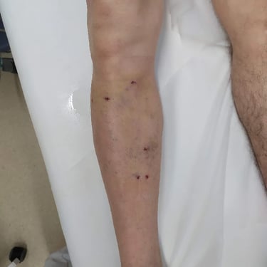 optimálny výsledok: suché alebo mierne krvavo presiaknuté krytie bez známok aktívneho krvácania. stačí použiť bežnú dezinfekciu na rany, natrieť podliatiny Lioton gelom a navliecť pančuchu. pacient užíva Detralex alebo jeho deriváty aspoň mesiac od výkonu.